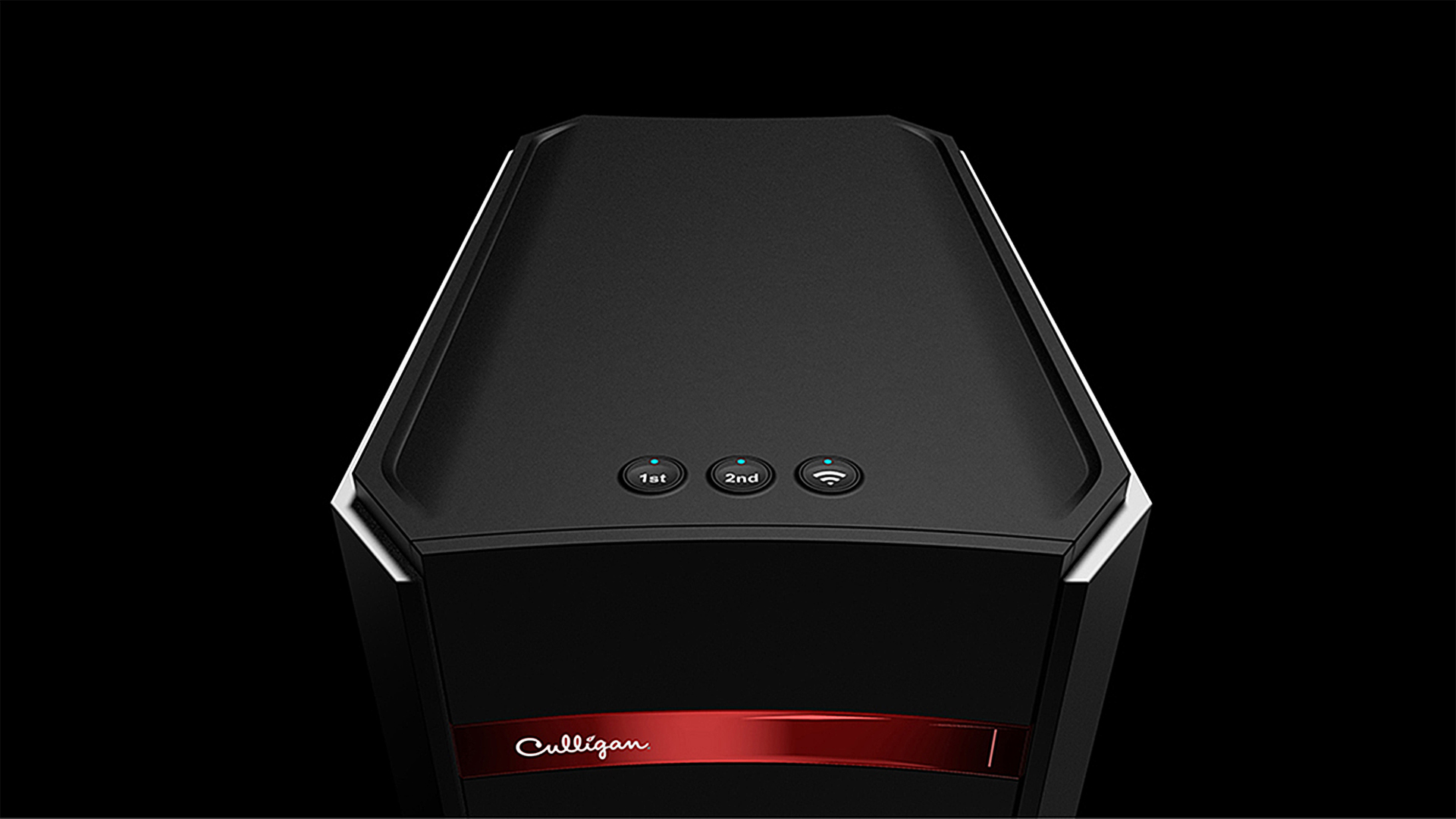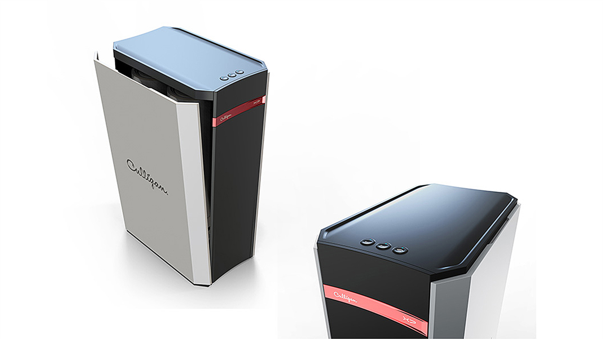 產品外觀設計上,采用簡單幾何形體切割語言簡約大氣,適用于現(xiàn)代家居裝修風格;白、深灰配色既體現(xiàn)其沉穩(wěn)氣質,也容易融入現(xiàn)代廚房的配色;紅色裝飾條點綴外觀的同時,突顯品牌logo,增加品牌辨識度;月球坑的按鍵造型設計,貼合手指接觸面,提高用戶操作舒適度。