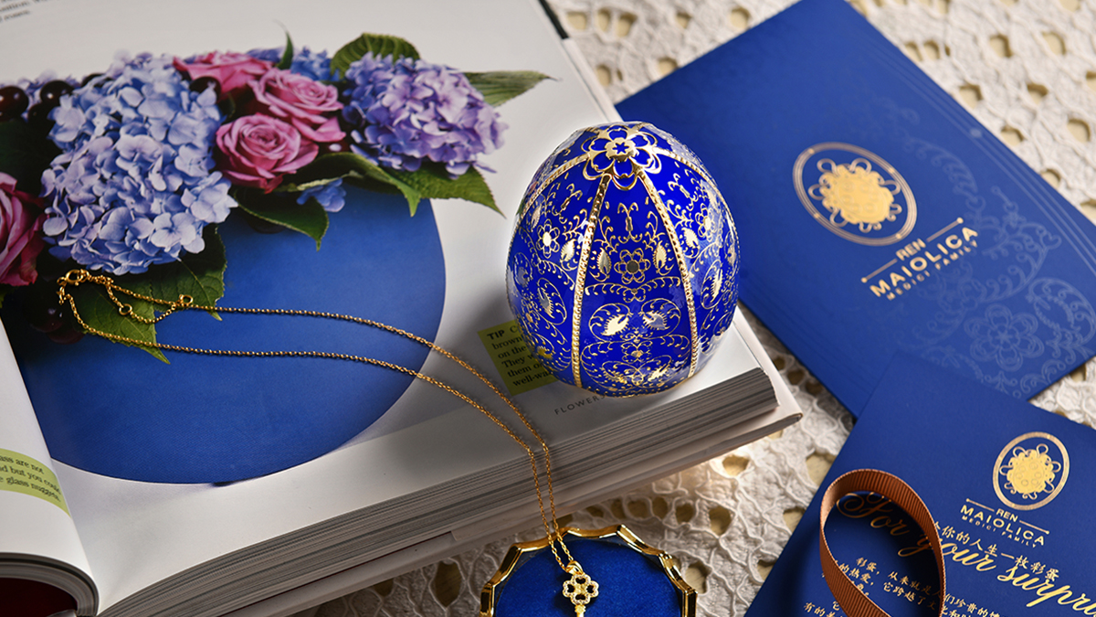 《馬約里卡金喜彩蛋套裝》的設(shè)計(jì)源自大英博物館藏品一文藝復(fù)興時(shí)期馬約里卡陶盤(pán),將文藝復(fù)興締造者美第奇家族的族徽作為整個(gè)設(shè)計(jì)的設(shè)計(jì)重點(diǎn),形成統(tǒng)一的設(shè)計(jì)語(yǔ)言,將所有產(chǎn)品融為整體。