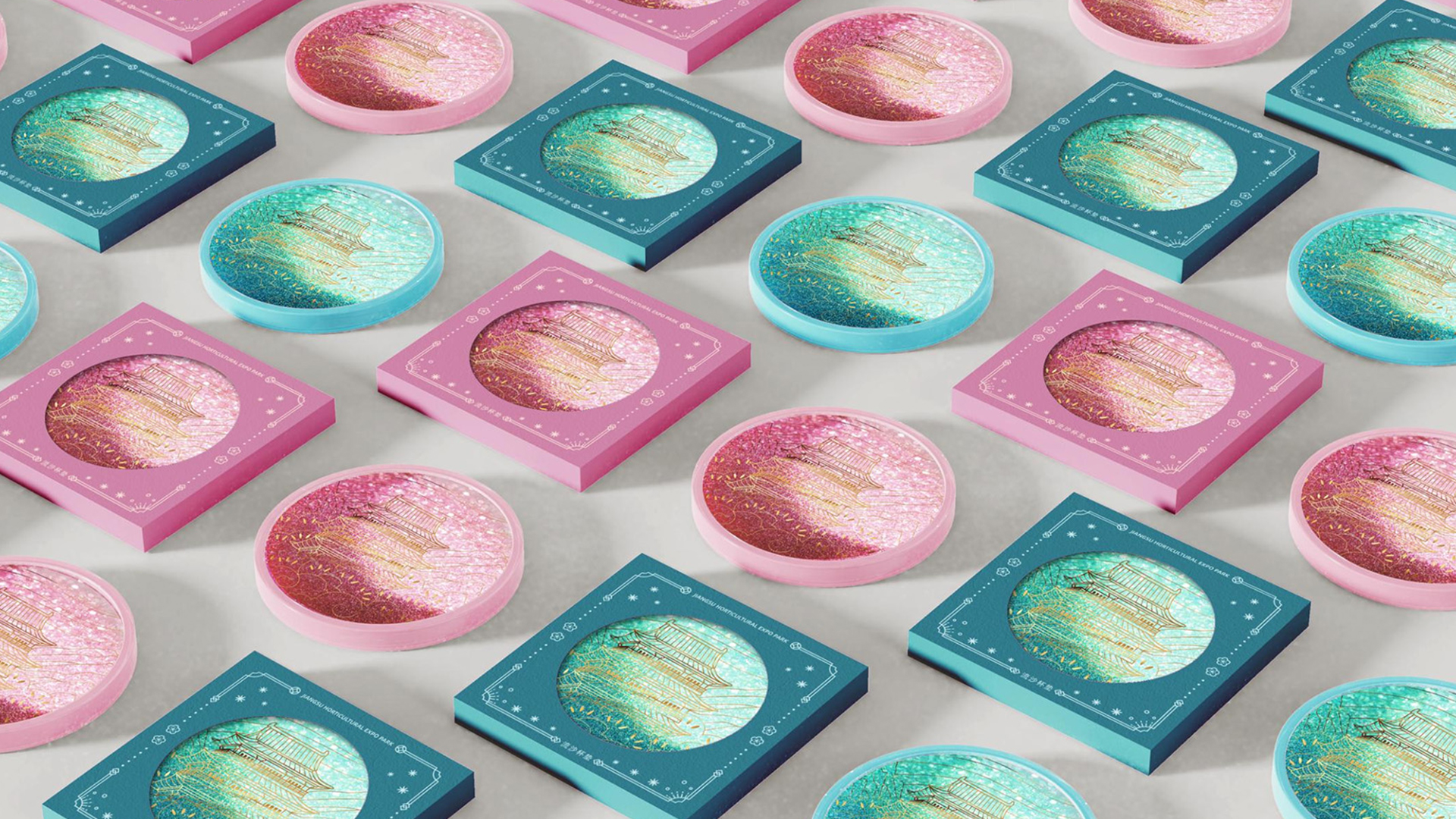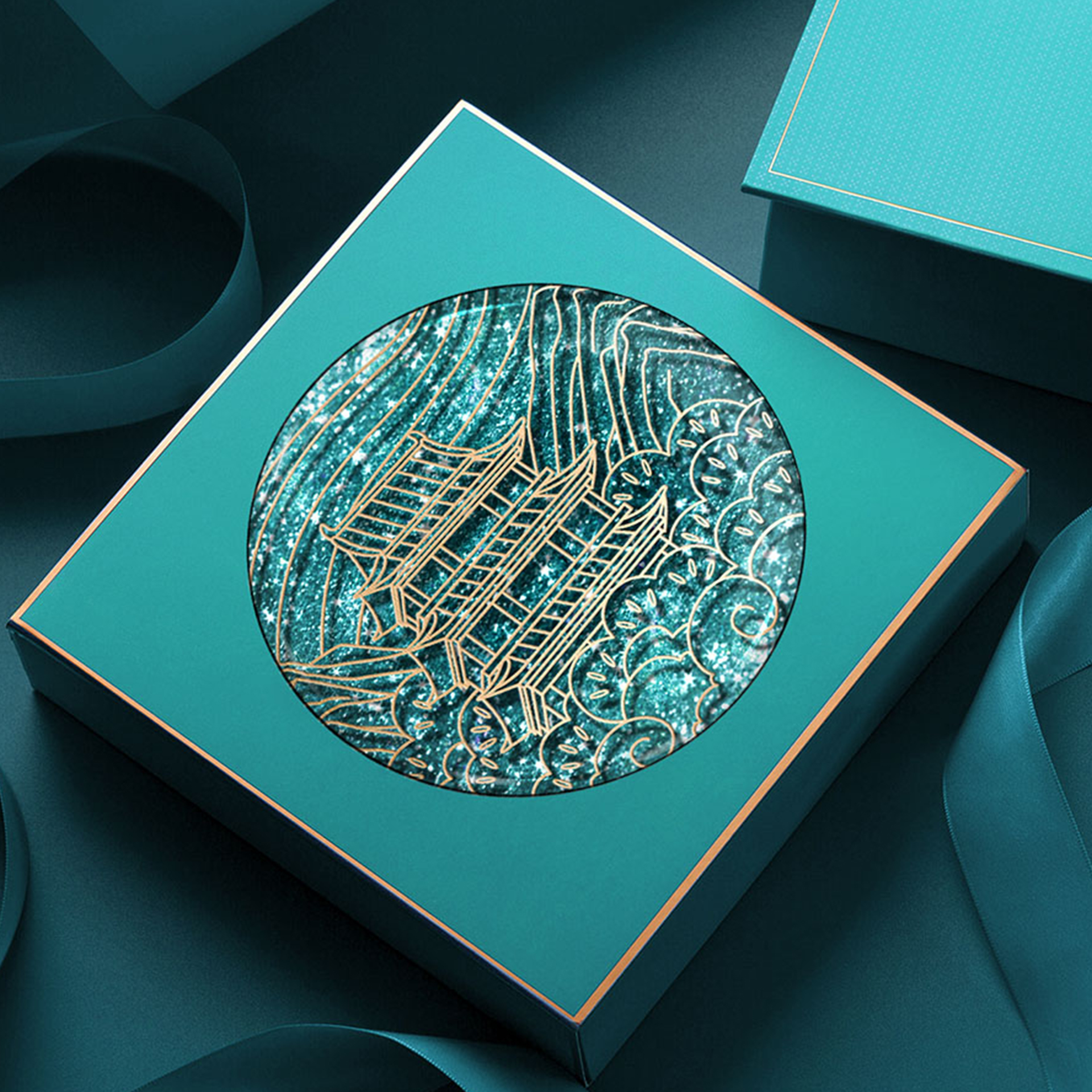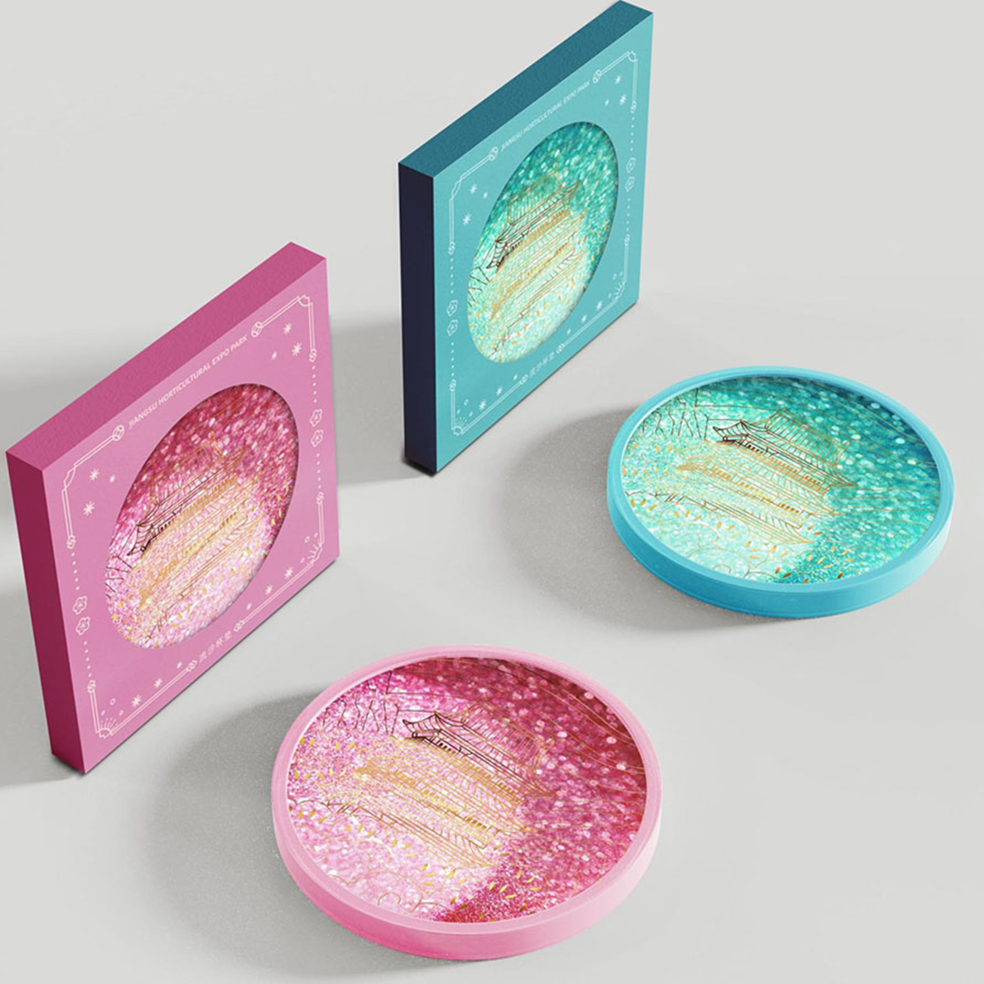 流沙杯墊系列:雨京園·流沙杯墊系列以商京園的地標建筑景陽樓為設計靈感,巧妙的將建筑元素做了畫中畫的處理,表達了美好祝福。