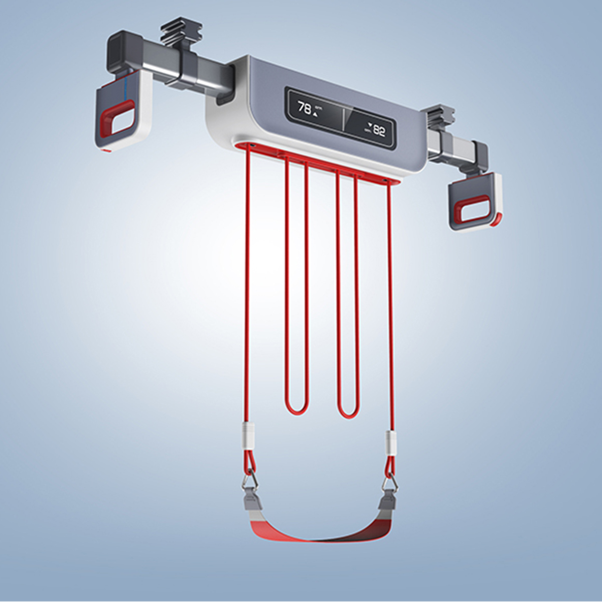 設計師給頂部配備了4套可安裝的模組,這樣可以保證覆蓋各種體重和身高的健復人員。醫(yī)療床的加入,使整體設備具備了更寬廣 的活動空間和康復動作,也能讓健復醫(yī)師更加方便操作。