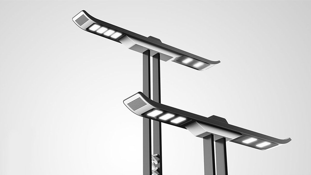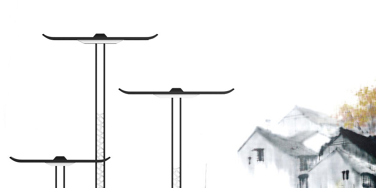 以江南獨(dú)特的建筑風(fēng)格設(shè)計(jì)此款路燈,應(yīng)用白墻黑瓦的色彩,將烏黑的瓦房上翹元素運(yùn)用至路燈的照明位置,加以花窗式錯(cuò)落有致的紋路樣式,讓此款路燈更具江南風(fēng),營(yíng)造了獨(dú)特的江南韻味。