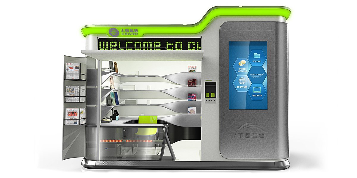 幫助中國郵政設(shè)計的智能報刊亭,秉承“以人為本”親民、便民為設(shè)計初衷,柔潤的圓角和流暢的曲線為產(chǎn)品增添親和力,簡潔的外觀與內(nèi)部流暢的曲線和燈光效果相呼應(yīng),凸顯產(chǎn)品的科技感同時又不顯得沉悶。多功能和模塊化設(shè)計更是人性化設(shè)計的主要體現(xiàn)。