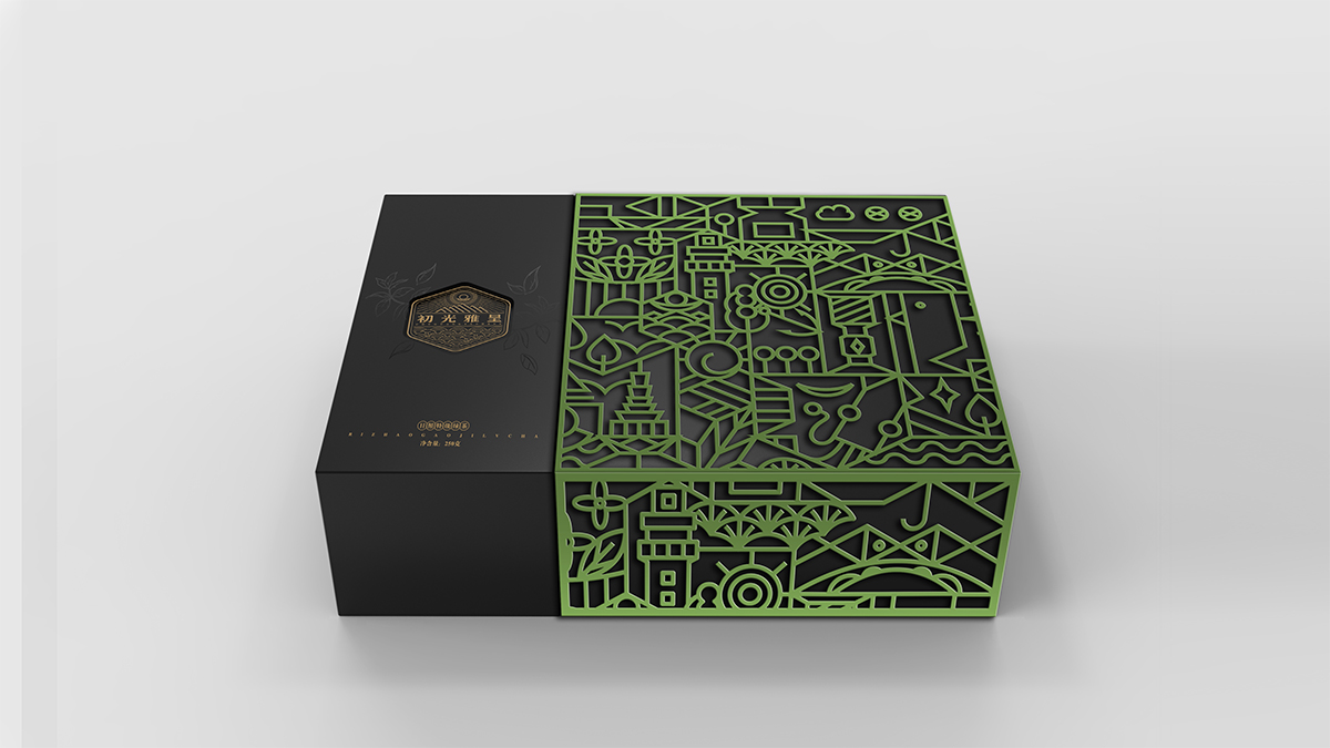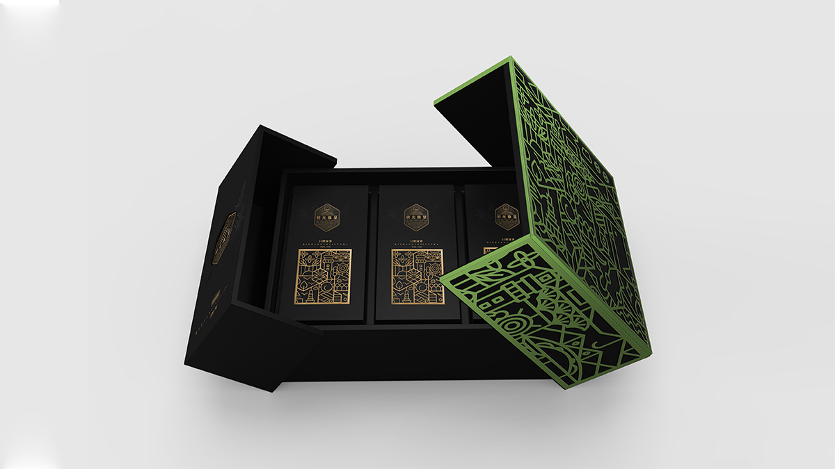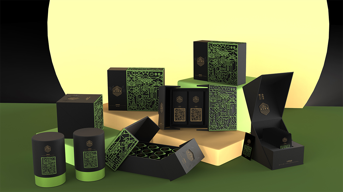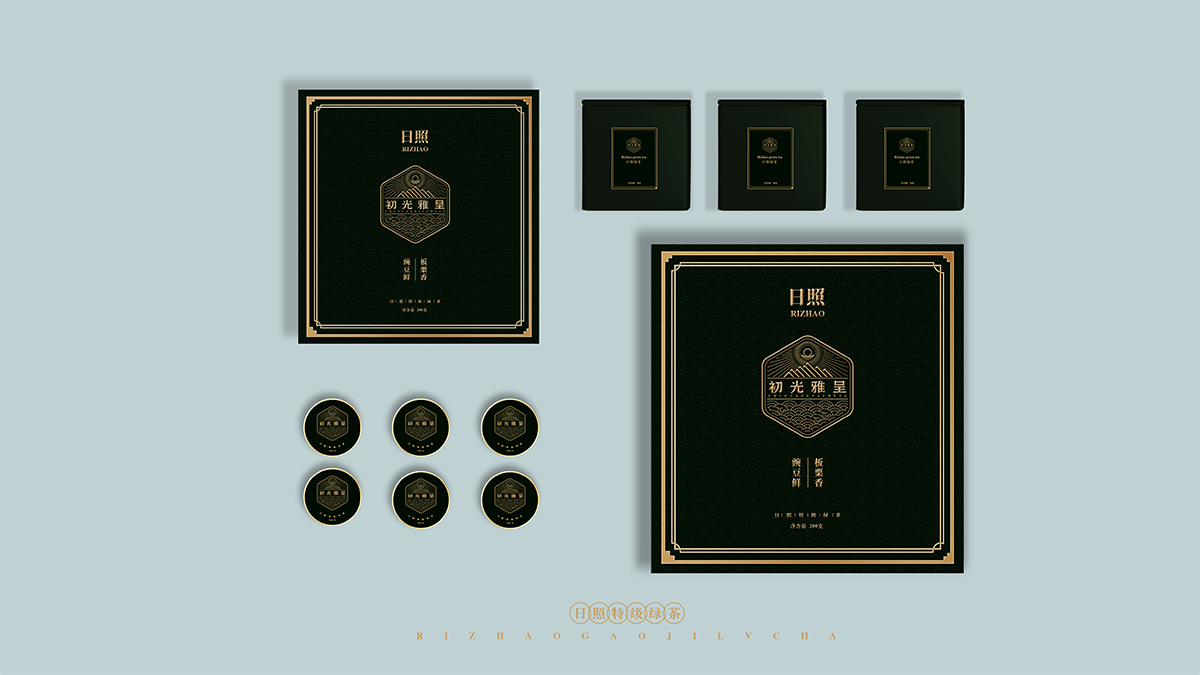 基于品牌風(fēng)格定位,我們以體現(xiàn)產(chǎn)品的高端、高品質(zhì)、文化屬性以及歷史厚重感為設(shè)計的主要方向。我們對于包裝應(yīng)用:色彩是保持品牌可視化的強(qiáng)大工具,在包裝用色上,我們主要以太陽文化、茶葉為原型,提取其中顏色,將黑、金、綠相結(jié)合,深沉、古樸、高雅,賦予品牌高端感,具有強(qiáng)烈的視覺沖擊力。