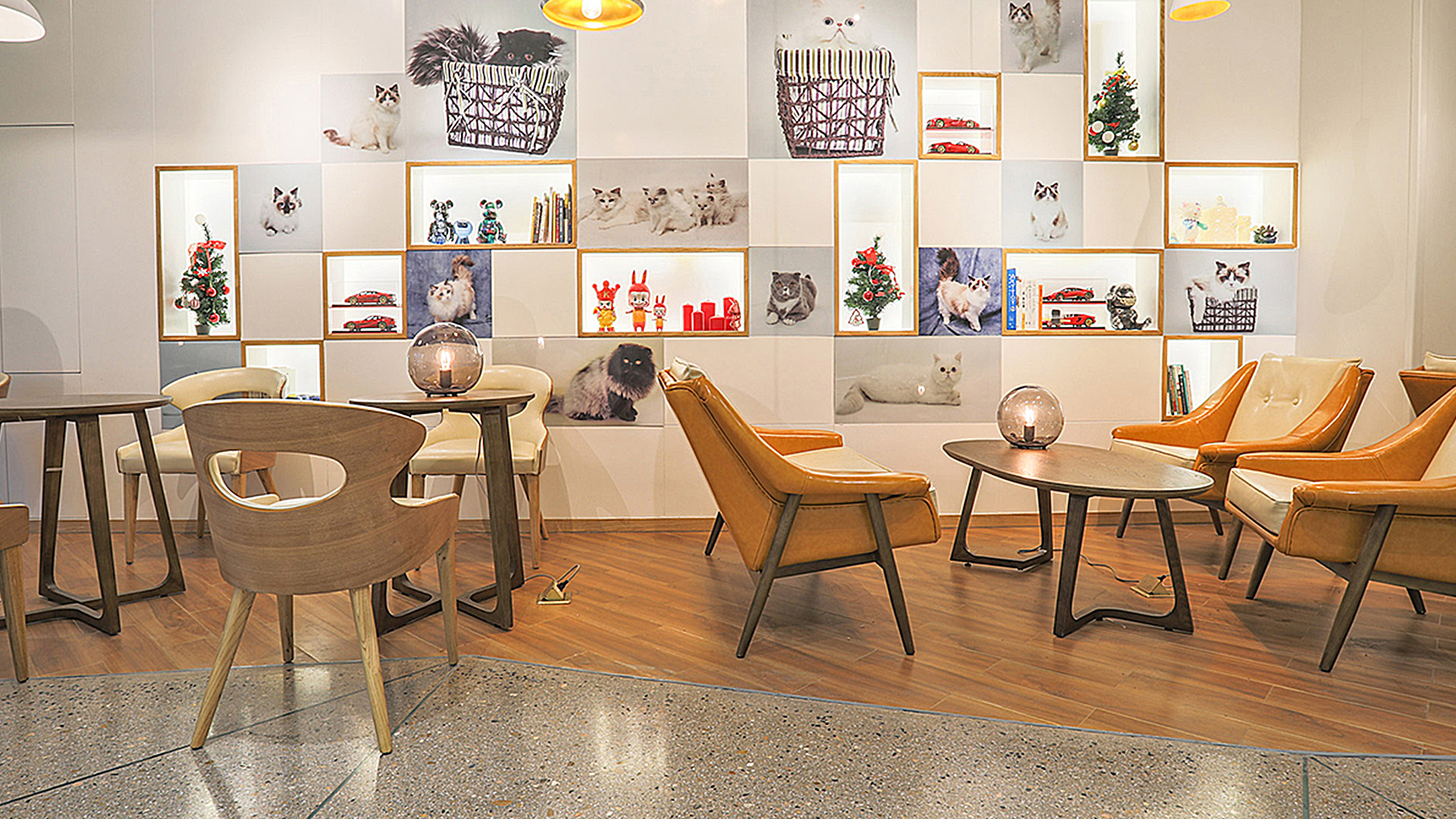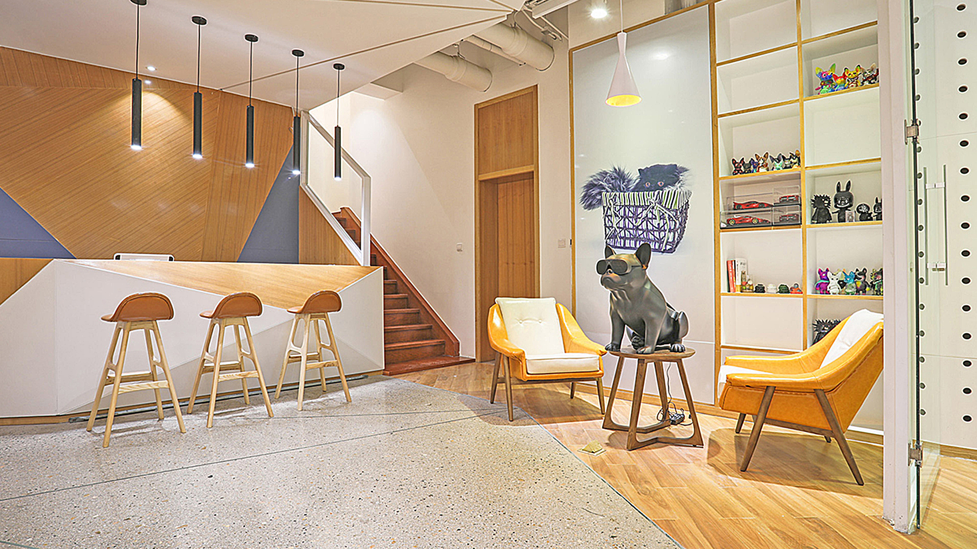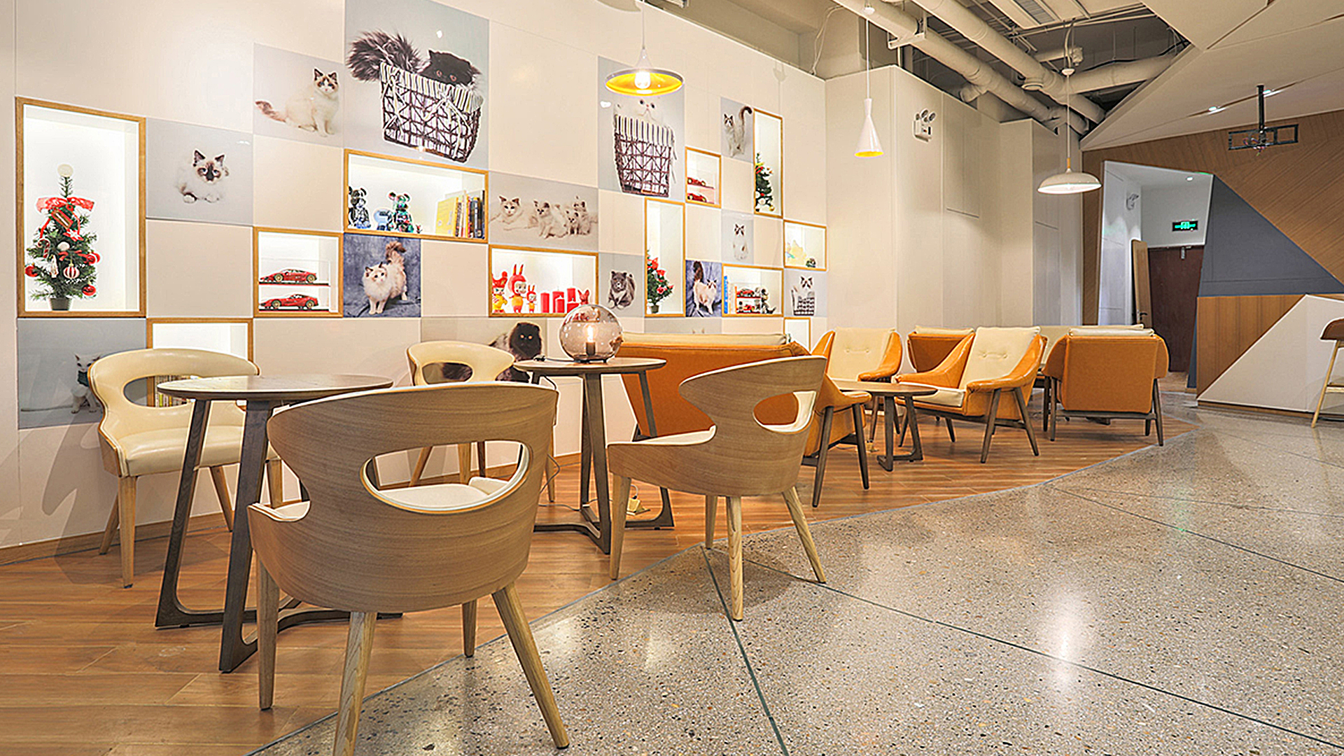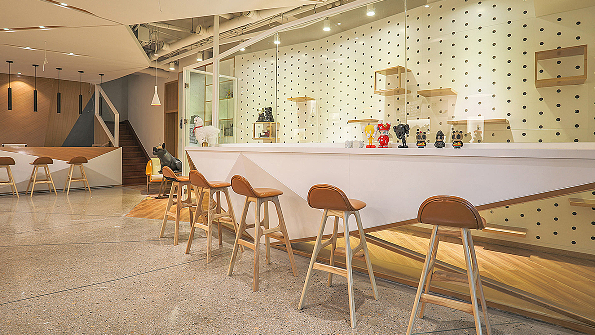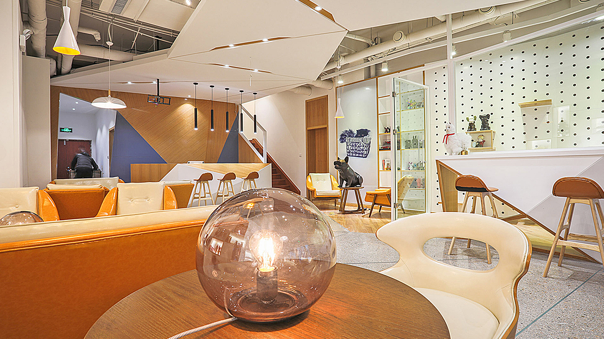 這次的設(shè)計(jì),我們將重新詮釋寵物店的含義,社區(qū)門口的寵物店不能只是一家寵物美容或者寵物用品的小超市,而更應(yīng)注重休閑生活氛圍體驗(yàn),形成養(yǎng)寵物人們之間能夠進(jìn)行話題交流的場(chǎng)所,為這些熱愛(ài)生活,熱愛(ài)寵物的人們提供家一樣的感受。空間以暖黃色作為主色調(diào),以及一系列寵物裝飾造型,都很好的表現(xiàn)出店鋪的“溫馨度”,讓顧客到店體會(huì)到的不僅僅是專業(yè)、放心,更多了一份溫暖。設(shè)計(jì)師在大門出設(shè)計(jì)了一個(gè)櫥窗,偶然經(jīng)過(guò)的路人透過(guò)櫥窗,里面的溫馨場(chǎng)景一目了然。