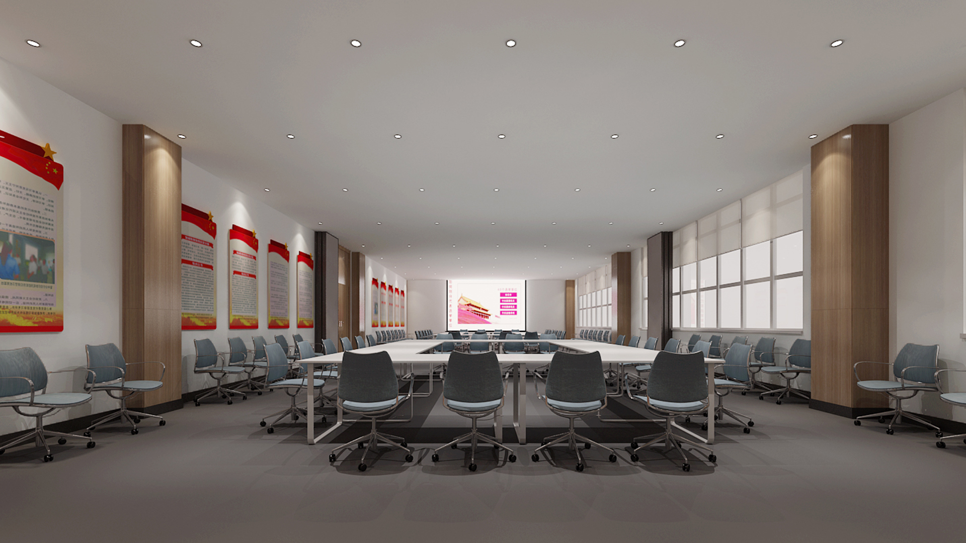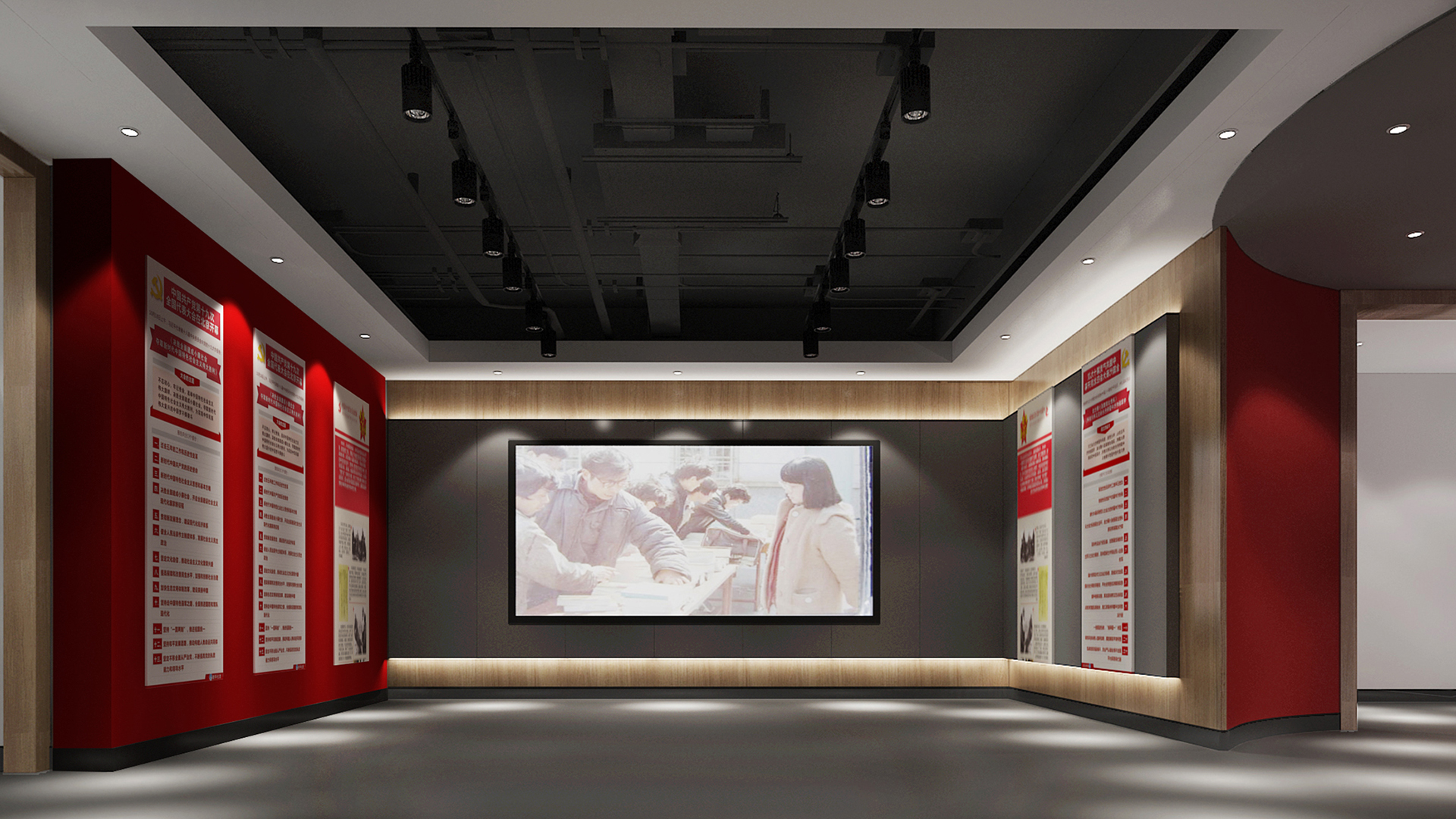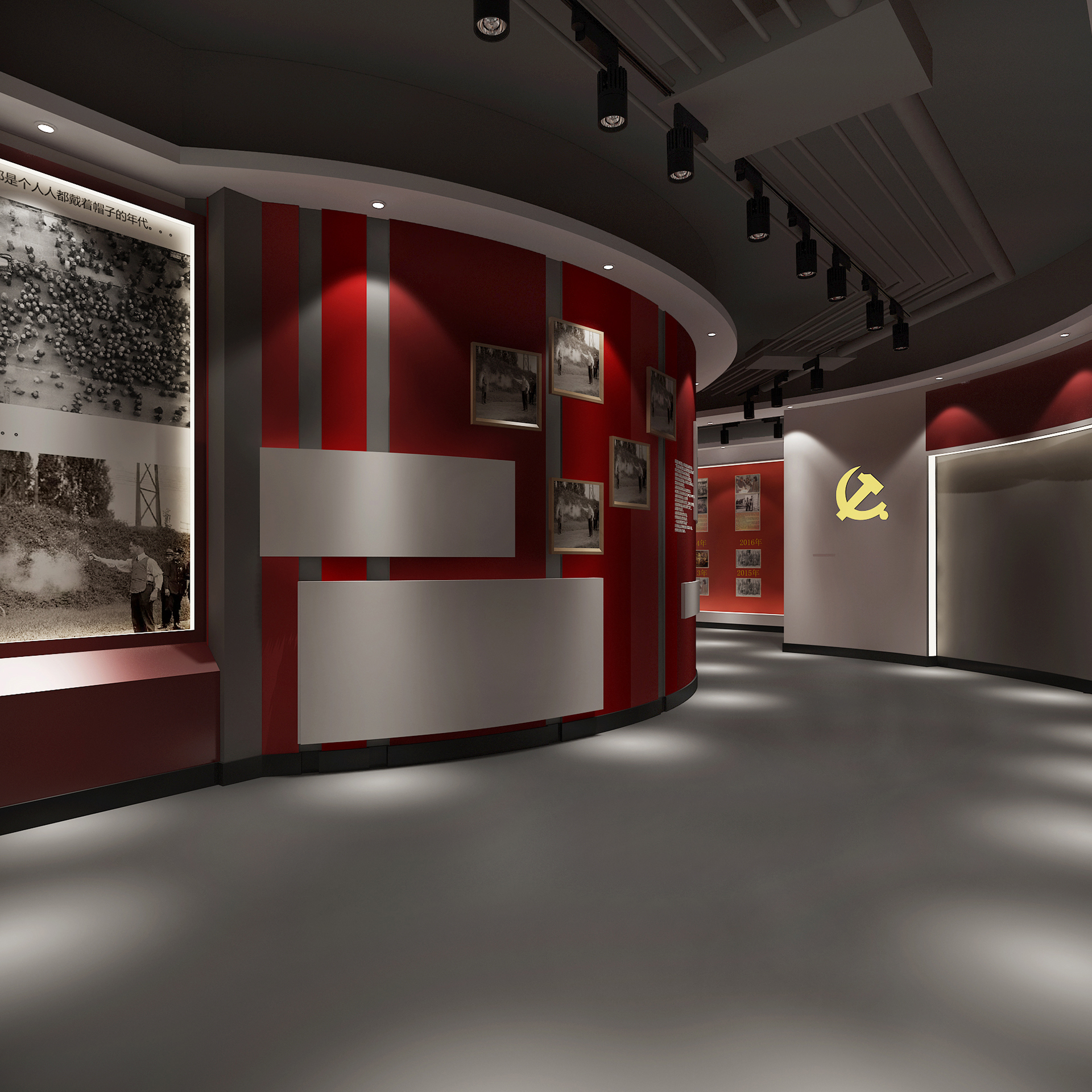黨建活動中心需要準確定義黨建文化主題、時代性的展示、深刻的黨史印象和空間的合理使用安排,弘揚正能量的同時,關(guān)心參觀用戶對黨史展廳的體驗度。