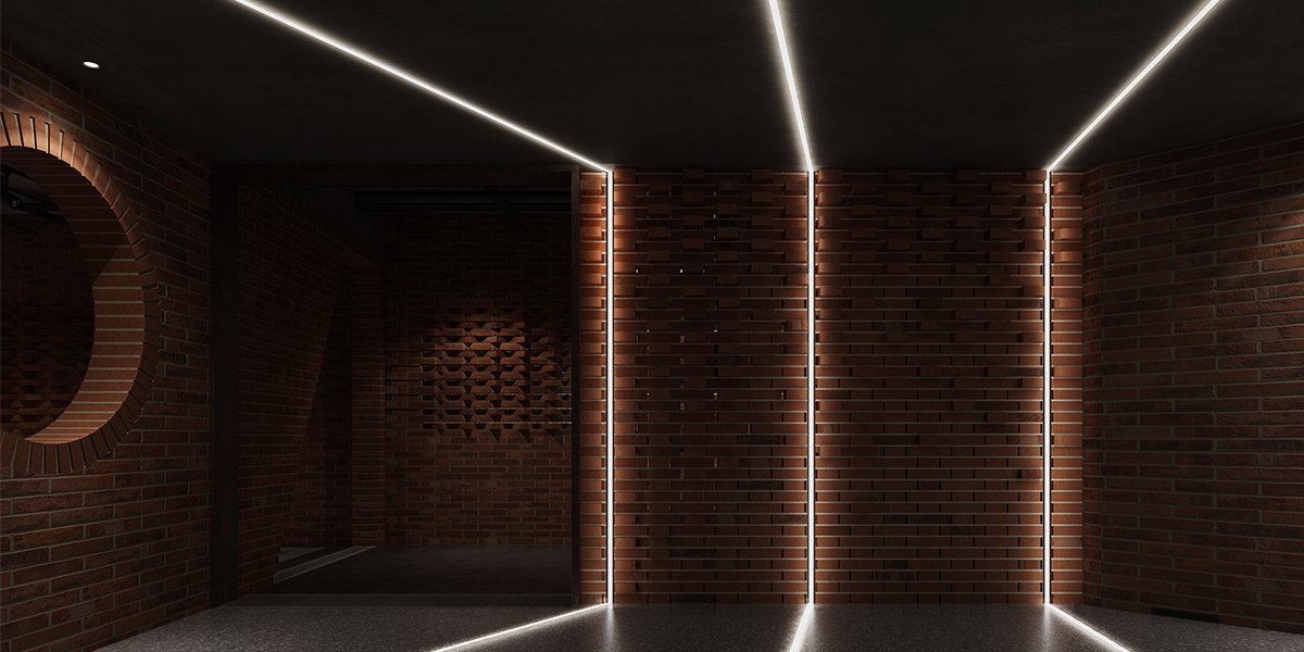 酒吧寬闊的通道讓吧臺、酒墻、沙發(fā)區(qū)分散開來,讓在不同區(qū)域活動的人在碩大的空間中找到自己的歸屬。光在整個空間中扮演著各種角色,有些讓人沉靜,有些讓人興奮。石墻、鵝卵石,最純粹的建筑元素在精心的排布和設(shè)計中發(fā)揮了其美的特點。墻面構(gòu)筑元素采用了泡沫紅陶瓷用來模擬紅磚材料,防水防火?;璋档沫h(huán)境下,人們才真正可以與世隔絕,享受自由。