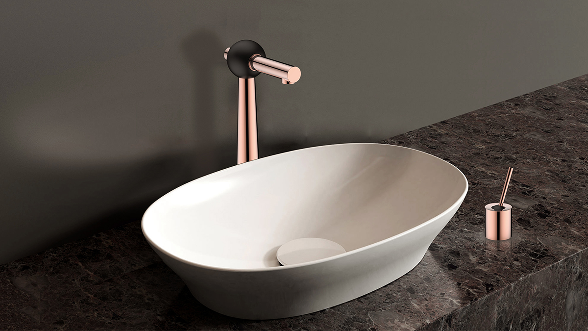 金屬管件采用玫瑰金配色增添產(chǎn)品時尚貴氣之感,磨砂黑色球體連接其中,給人典雅神秘之感,象征打破傳統(tǒng)表現(xiàn)自我的精神價值。