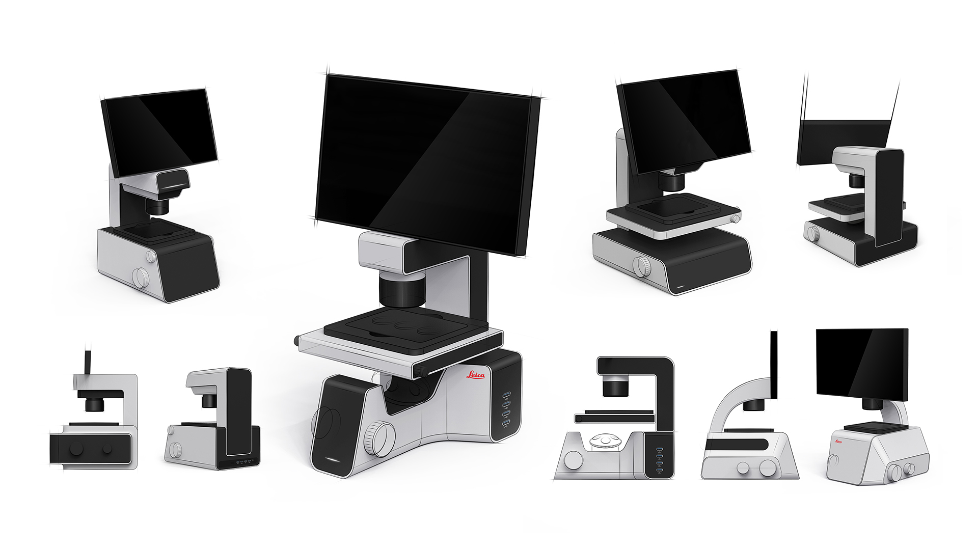疫情的肆虐促使全球生物醫(yī)療領(lǐng)域高速發(fā)展,對微觀世界研究和探索的需求日益增強(qiáng)。在臨床和生物監(jiān)測方面,徠卡有其獨(dú)特的檢測流程和設(shè)備。徠卡SMILE通用顯微鏡相較于其他光學(xué)顯微鏡,最大的優(yōu)勢是設(shè)計(jì)有可旋轉(zhuǎn)的高清顯示屏幕,方便實(shí)驗(yàn)者在使用時(shí)詳細(xì)的觀察數(shù)據(jù),并設(shè)計(jì)有一鍵拍照按鈕,隨時(shí)將需要的數(shù)據(jù)保存下來。整個(gè)產(chǎn)品的設(shè)計(jì)風(fēng)格采用了徠卡全新的品牌形象定義,同時(shí)設(shè)計(jì)師還為通用顯微鏡系統(tǒng)設(shè)計(jì)了統(tǒng)一的品牌形象標(biāo)識(shí)。